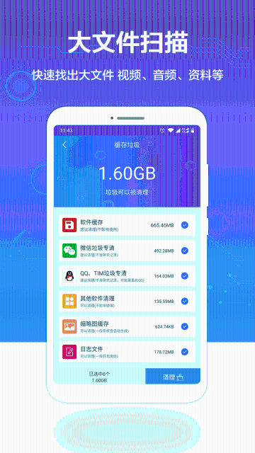 其次,这款软件还具备迅速扫描手机中超大文件的功能。有些文件,如视频、音频、图片等,由于体积较大,会占用较多的手机存储空间。通过存储空间清理,用户可以迅速定位到这些无用的大文件,并选择清理,从而为手机腾出更多的空间。
