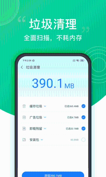 尽管它的体积轻巧,但功能却毫不逊色,它的精简安装包不会占用您的宝贵存储空间。搭载了先进的垃圾文件扫描引擎,一键清理大师能够深层次且迅速地释放手机内存,有效解决设备在使用过程中出现的卡顿、电池消耗过快以及内存不足等问题。