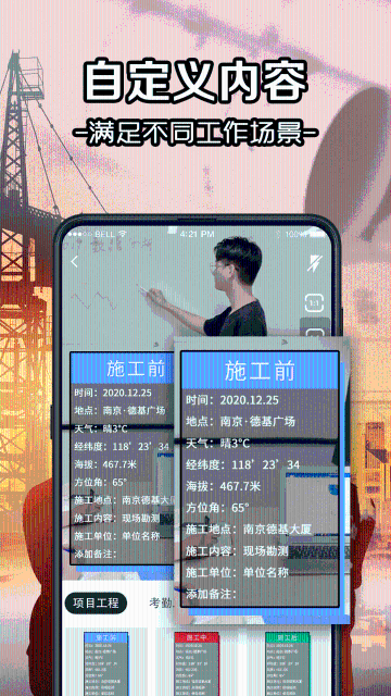 【真实防篡改水印】— 考虑到考勤数据的重要性,我们确保水印中的时间、地点信息不可编辑,以保障信息的真实性。同时,可根据实际需求添加经纬度、天气、海拔等信息,增强考勤记录的准确性和可信度。
