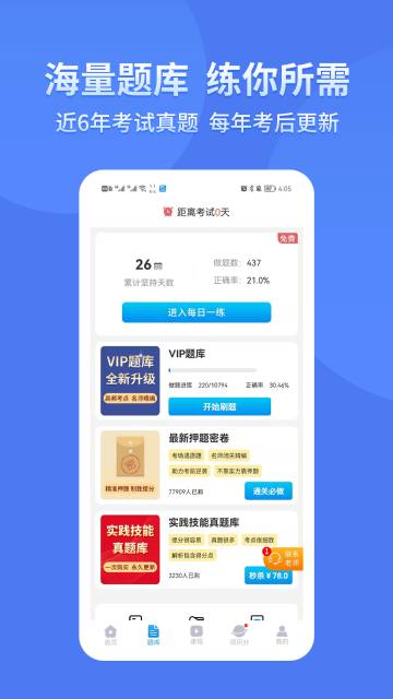 - 利用碎片时间,随时随地学习。阿虎题库提供多种练习形式,包括章节练习、随机练习、错题重练、知识点测试等。针对错题难题进行反复演练,确保你胸有成竹。